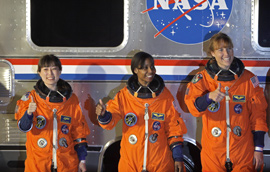 The United States Space Program launched an unprecedented three women into space today, in an effort to finally make it into the Guiness Book of World Records. They will meet up with already orbiting Tracy Caldwell Dyson, a chemist turned astronaut who just finished constructing the first intergalactic meth lab.
